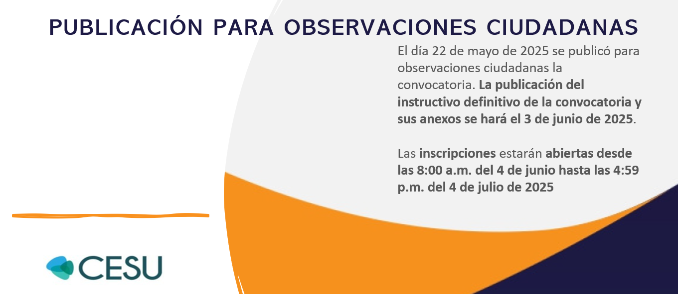 El Ministerio de Educación Nacional, a través de la Secretaría Técnica del CESU, convoca a expertos(as) de las más altas calidades científicas, académicas y profesionales a participar de la presente convocatoria, cuya finalidad es la de suplir una vacante del Consejo Nacional de Acreditación (CNA) bajo el perfil agronomía, veterinaria y afines, de conformidad con lo dispuesto en el artículo 36 de la Ley 30 de 1992 y en el Acuerdo 01 de 2020, modificado por el Acuerdo 01 de 2021, emitido por el Consejo Nacional de Educación Superior (CESU).
